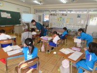 「たぬきの糸車」お話の場面を想像しながら、たぬきの気持ちを想像しながら楽しそうに学習を進めています。教室では先生もいろいろな工夫をして見せながら児童と一緒にお話を楽しんでいました。「ここでは」好きなと...
