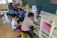 理科で学習した磁石の性質を考えながらつくった遊びをみんなで楽しんでいました。ユニークなお魚さんたち(?)と釣り竿をつくって、そこに磁石にひきつけられる身のまわりの物をくっつけて、大漁!大漁!でもなかな...