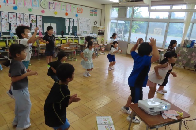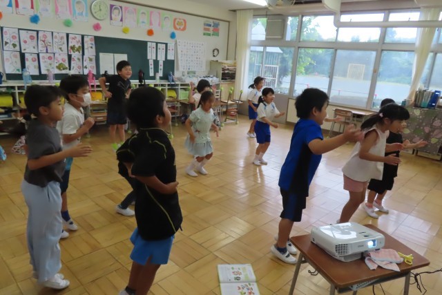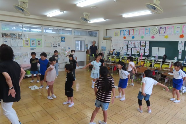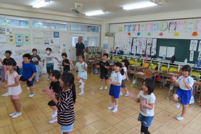 予想通り(予定どおり)2年生が1年生の楽しく素晴らしいお手本となり活躍しました。今日楽しんだのは、「ボディーパーカッション」というそうです。リズムにのって、先生からの呼びかけにこたる場面もあって本当に楽しそうでした。体全体を打楽器みたいに叩いて音をだします。リズム感バッチリなうえに、みんなで一緒にやると、なんだか1つの音楽のようにきこえて、まとまってる!そんな感じがしました。それにしても音楽大好きで「笑顔いっぱい」な1・2年生の様子を紹介できて嬉しいです。
