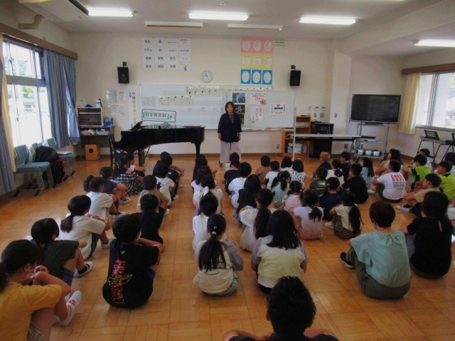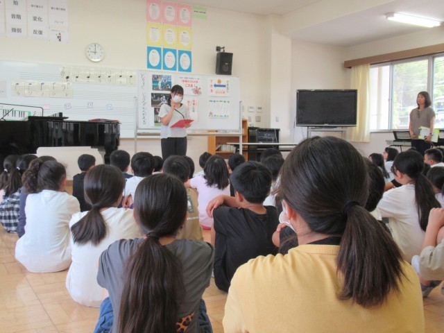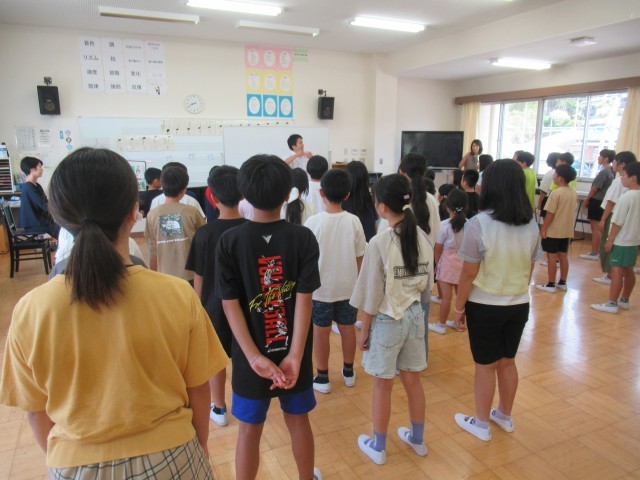 元気な児童の笑顔が学校に戻ってきました!今日から2学期です。始業式では、「学びいっぱい・笑顔いっぱい・やる気いっぱい」をさらにパワーアップさせて、自分の目標や夢の実現に向けて挑戦する2学期とするために、どうしたらよいか?みんなで考えました。また始業式後には、養護教諭より、感染症対策、規則正しい生活について児童に話がありました。