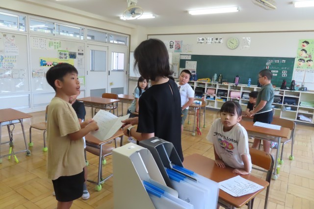 係を決めていました。感心したのは、3年生がたくましく!2年生をリードしていたり、自分たちで進んで仕事内容の確認をしていたりしたことです。また、1学期の学級会で話し合われた改善点をもとに、さらによい係の仕事ができるようにと、考えていたことも素晴らしいです。2年生は3年生の姿を見て成長しています。3年生は2年生をリードできるようよく考えて行動しています。2・3年生一緒だからこそ充実できることがたくさんあるので、2学期の頑張りにも期待しています。