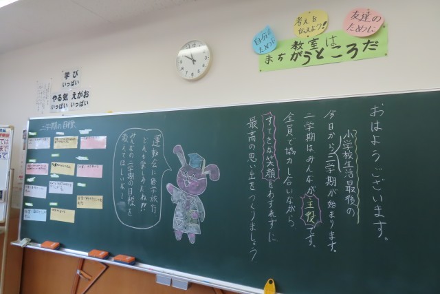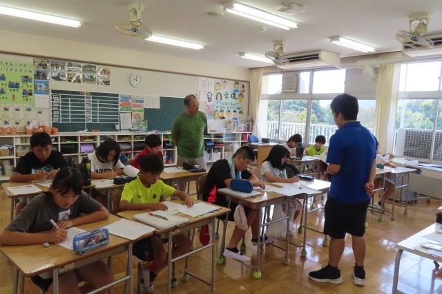 何をするにも「小学校生活最後の」という言葉がついてきます。だからこそ、6年生は一つ一つの行事、学習、友達と過ごす時間などすべてにおいて、思いをもって臨んでいます。教室では2学期の目標をじっくりと考えていました。始業式の中で「目標は努力したあとの自分の姿」と考えたので、さらに自分自身のことを見つめ直して、考え直していました。そんな真剣な姿を見ていると、ますます応援したくなります。頑張れ!6年生!