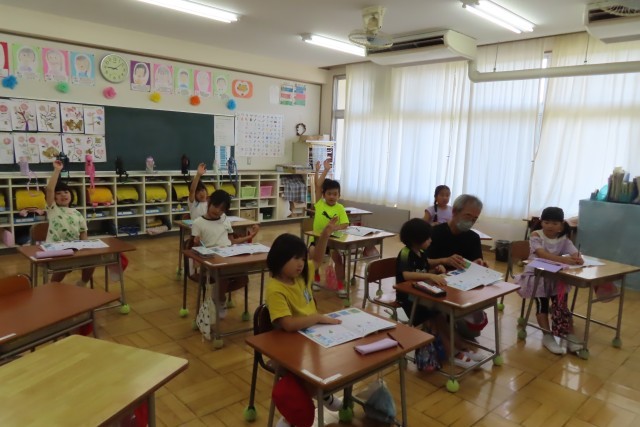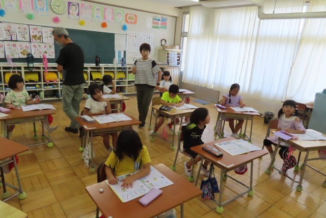 2学期の国語は、初めてのカタカナの学習から始まりました。今日は「ノ」や「イ」を書けるようになりました。どんな言葉で使われているかな?児童からたくさんのカタカナの言葉があがっていました。いつもなじみのある言葉が今度は書けるようになったり読めるようになったりできますね。1年生の成長はすごいです。