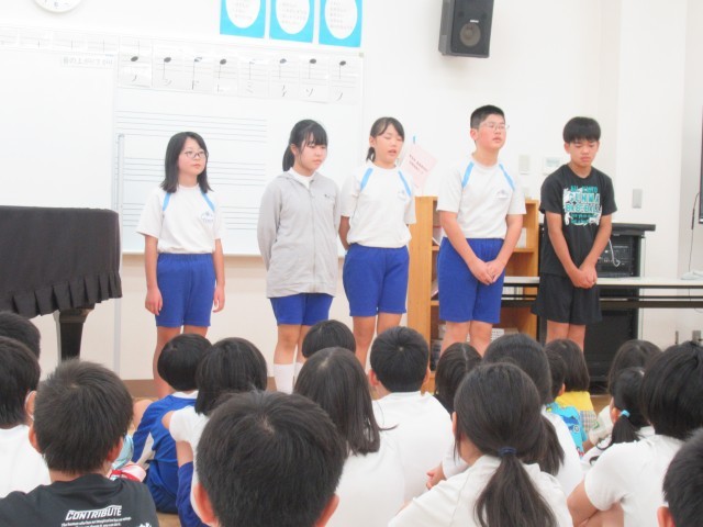 今朝、全校児童の集まりで、6年生から「今日からたてわり清掃。みんなで学校をきれいにしましょう」と呼びかけがありました。今日は、新しい清掃場所で、いつものようにみんなで協力し合って、上級生が下級生の面倒をよく見て、丁寧に掃除をしました。隅々まで手を伸ばして、限られた時間内で一生懸命掃除に励む美九里西小の児童です。掃除をする姿にはその人の心が表れるもの。美九里西小の児童は、美しくて優しい心の持ち主です!