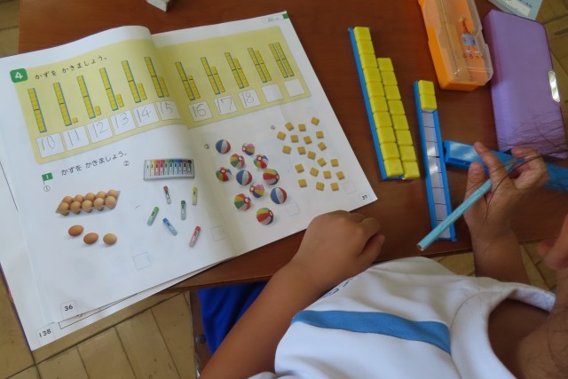 「10よりおおきいかず」の学習が順調です。10から20までの数をブロックで確認し、教科書にある絵の数を数え始めました。「ここでは」10のかたまりをつくることの大切さをたくさんたくさん学びます。また、2、4、6・・・と数えていくことのよさにも気付きます。学校だけではなく、家でも外出先でも、どんどん大きな数を数えられるようになります。また、どんどんはやく正確に数えることができるようにもなります。