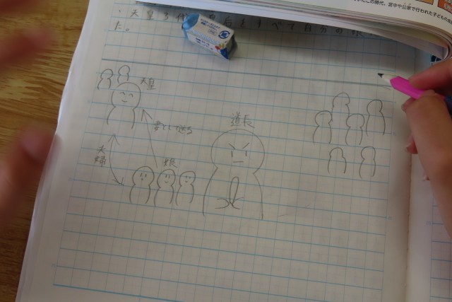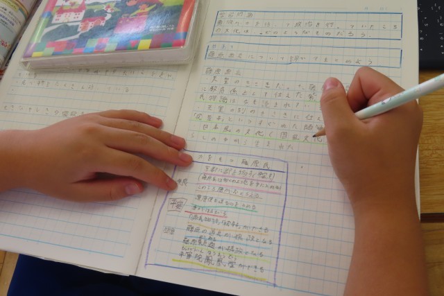 「貴族のくらし」平安時代の学習に入りました。「ここでは」貴族が力をもって政治をしていたころの文化について学びます。ちょうど教室では、藤原道長について調べ学習をしていました。どんな資料を使って?なにを知りたいから?そして、どうまとめる?もちろん個人でもしっかり考えて調べます。あわせてグループの友達と調べたことを共有したり、さらに調べてみよう!とお互いに確認しあったりして学習を進めていました。