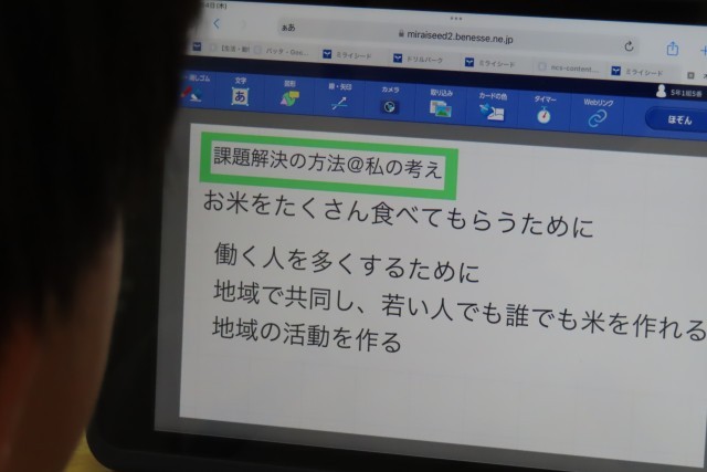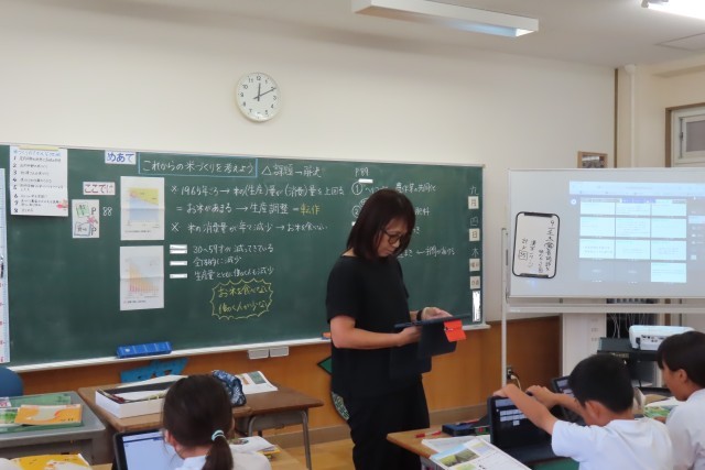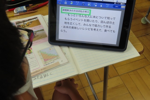 「米づくりのさかんな地域」の学習は、いよいよまとめに近付いています。今日は、米作り農家の抱える課題と新しい取組について学習し、課題解決のための自分の考えをまとめていました。ずいぶん悩んでいたようですが、それだけ真剣度が高く、自分事として考えることができているのだと思いました。具体的にどうしたらいいのか?をよく考えていました。昨今ではニュース等でも話題になることが多く、私達の生活においてもその影響は少なくありません。小学校5年生も小学生なりに、とても真剣に考えています!全員分ではありませんが紹介します。