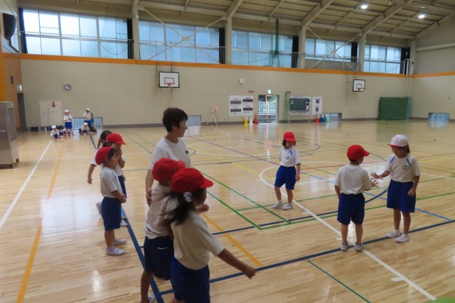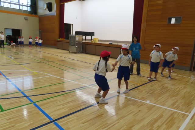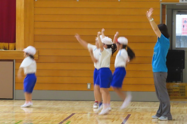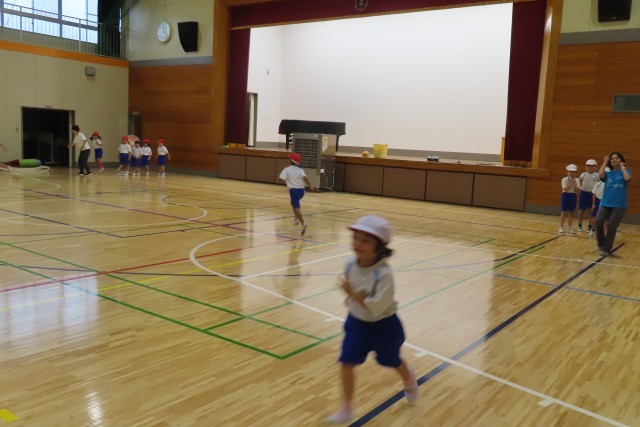 3時間目の体育館は、かなりアツかったです!今日はいくつかの運動遊びを楽しんでおり、一番盛り上がったのは、へびじゃんけんの形を広くして、とにかく全力で走るチーム戦です。じゃんけんなので運の勝負でもありますが、走る範囲が長いので、猛ダッシュしていました。全力で走る汗、仲間を応援する声、みんなキラキラしていました。