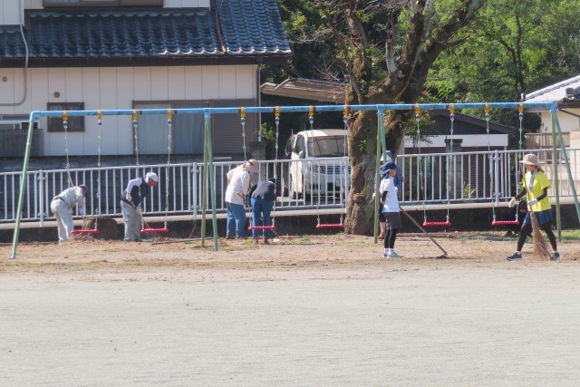 見違えるほどきれいになり、明日から児童が気持ちよく学習に遊びに励めること間違いありません。また、運動会の練習や陸上の練習等に必要なテント張りもしていただきました。ありがとうございました。