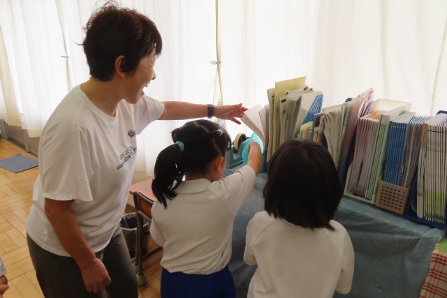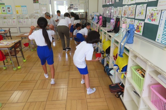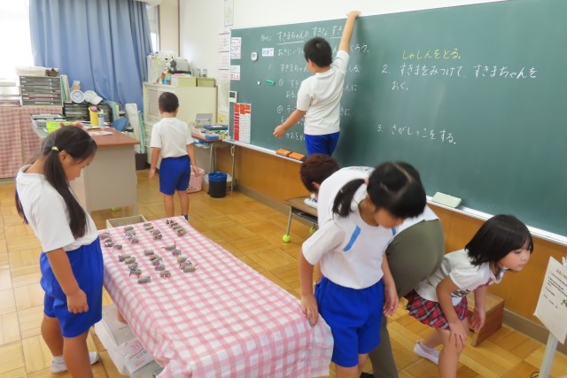 「すきまちゃんの すきな すきま」だそうです。お気に入りの「すきまちゃん」をすきまテープで作って顔をつくり、教室内のいろいろなすきまに隠して探して楽しそうに鑑賞していました。日頃何気なく過ごしている教室の中に、「すきまちゃんの すきな すきま」があったのですね!さて、児童は「すきまちゃん」を家に連れて帰るので、各ご家庭で一緒に遊んであげてください!