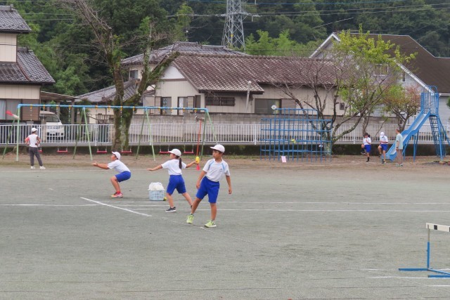 天気がなんとか味方してくれました。練習に参加している児童は「雨とか雷とか・・・だいじょうぶかなあ」「練習やりたいなあ」と願っていたので、練習ができてよかったですね。練習を重ねる度に記録が伸びて、目標に近付いていく選手候補たちです。