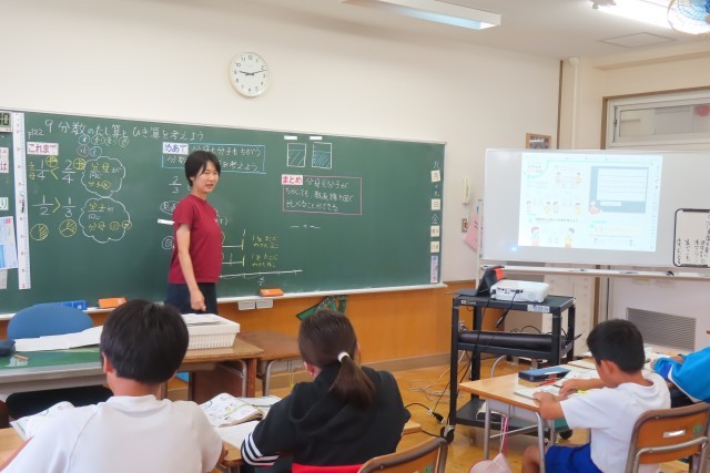 「分数のたし算とひき算」の学習に入りました。今日は、分母も分子も違う分数の大きさをどうやって比べられるのか?考えました。もちろん、「これまで」通り、図や数直線を使って考えることができました。「ここでは」さらに通分、約分といった考え方を学び、さらにこれまで以上に色々な分数の計算ができるようになります。