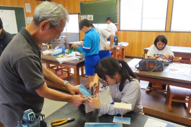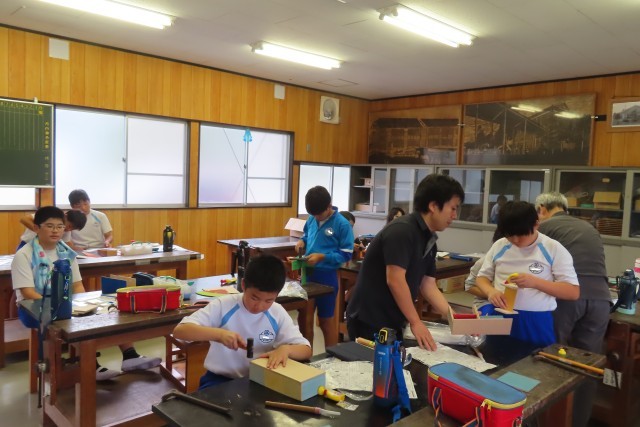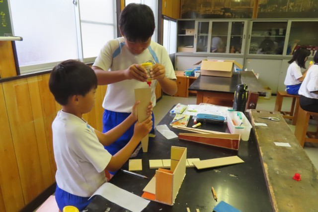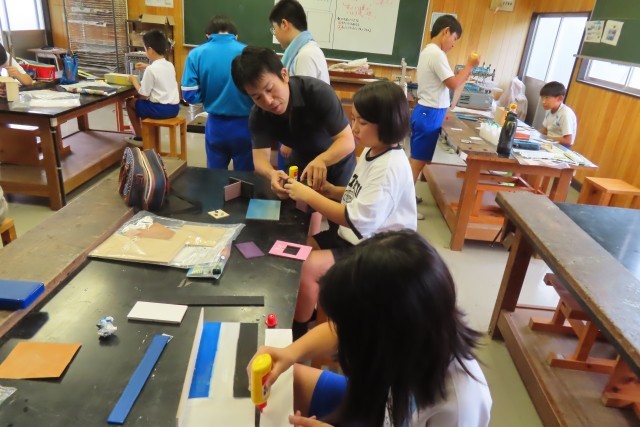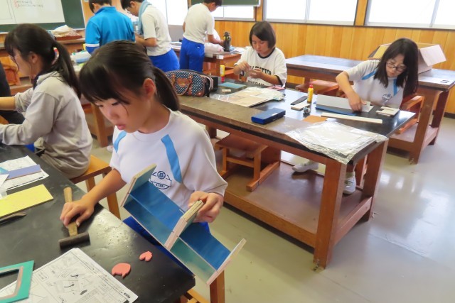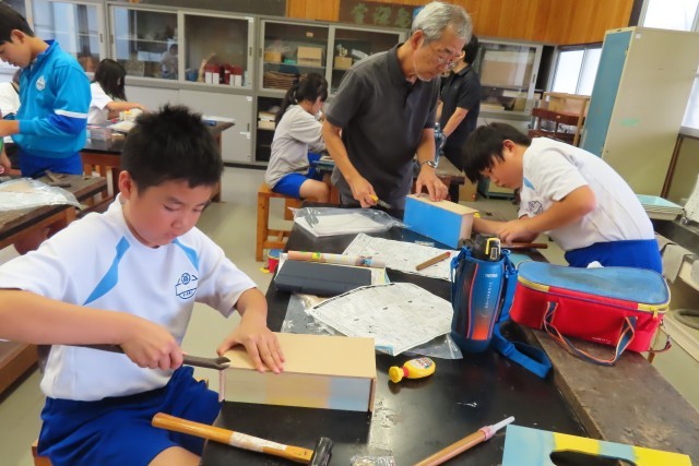 「1枚の板から」別名:「私はデザイナー 12さいの力で」とのことです。「ここでは」平らな1枚の板が、切り方や組み立て方の工夫次第で、生活を豊かにするものに生まれ変わることを実感します。そのために、何をなんのために作るの?どんなふうに使いたいものなの?さらに、板の特徴や目的にあったデザインを考えたり、使っていても飾っていても「自分の力でつくった私の大好きな作品」と思えるものになるよう工夫したりして頑張っています。