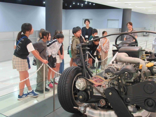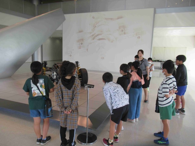 5年生は社会科の校外学習として、株式会社SUBARU様を見学しました。自動車の生産はいくつかの工程に分かれていますが、今回はボディとエンジンなどを組み立てる工程を、実際に工場内を歩きながら見させていただきました。人とロボットが協力して、正確に、素早く自動車が組み立てられていく様子を見て、子供たちからは「おお」「すごい」などの声が漏れていました。また、実際に見られない工程についても、VRゴーグルにより、臨場感をもって説明を受けることができました。見学後は太田運動公園で昼食タイムでした。爽やかな気候の中、お弁当をおいしくいただきました。日本の中心産業の一つである自動車工業。その様子や企業が取り組む工夫について知ることができ、有意義な一日となりました。株式会社SUBARUの皆様、誠にありがとうございました。