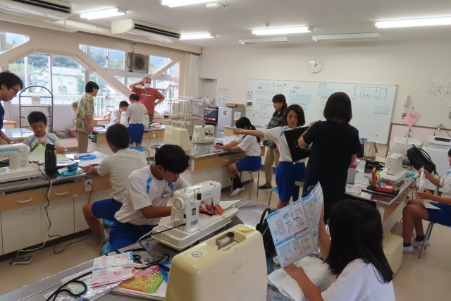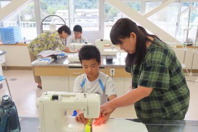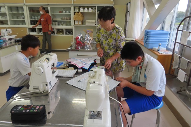 「ミシンで楽しくソーイング」では、目的に合った袋を手作りで作ることのよさについて、実際にナップザック作りを通して学習しています。今日も先週に引き続き、東クローバー(学校ボランティア)の方々にサポートしていただきました。段々仕上がりに近付いており、もう完成して背中に背負っている児童もいました。東クローバーの方々は、先週に引き続き見てくださっており、先週から見て前進している6年生のことをたくさんほめていただきました。ありがとうございます。