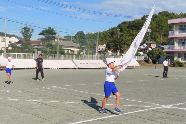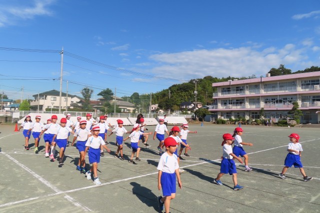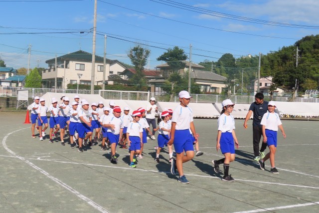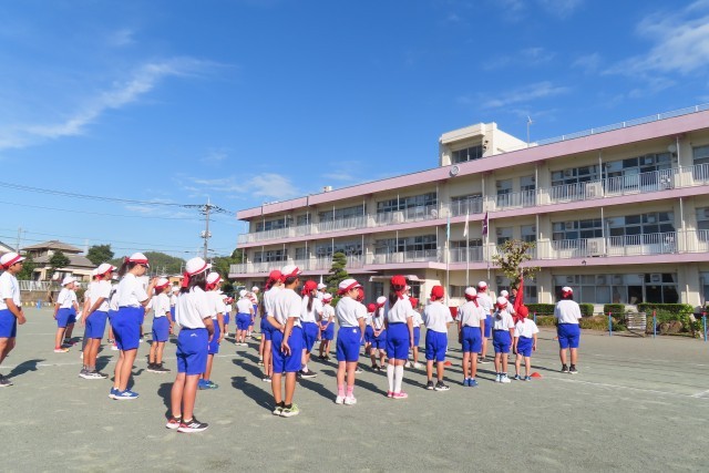 今日は晴れの天気で暑くなることが予想されていますが、風が涼しくて気持ちのよい朝でした。児童は、気持ちのよい汗をかいていました。