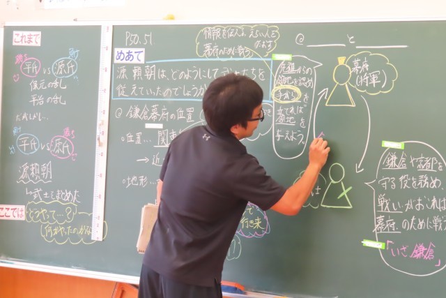 「武士の世の中へ」では、源 頼朝がどのように武士を従えていったのか?調べて学んでいました。「手がらを立てた武士には新しい領地をあたえた」「手がら」って?6年生が考えました。「これまで」学習してきた歴史の流れをがしっかりつながって考えることができていました。今を生きる私達には考えられないようなことも出てきます。「おそろしい」「こわい」学習とともに感情は正直に心の声としてでてきます。今、6年生には歴史をしっかりと学習することの大切さも感じてほしいです。