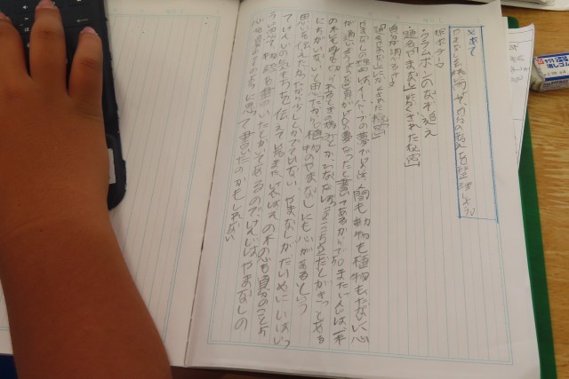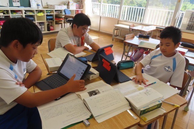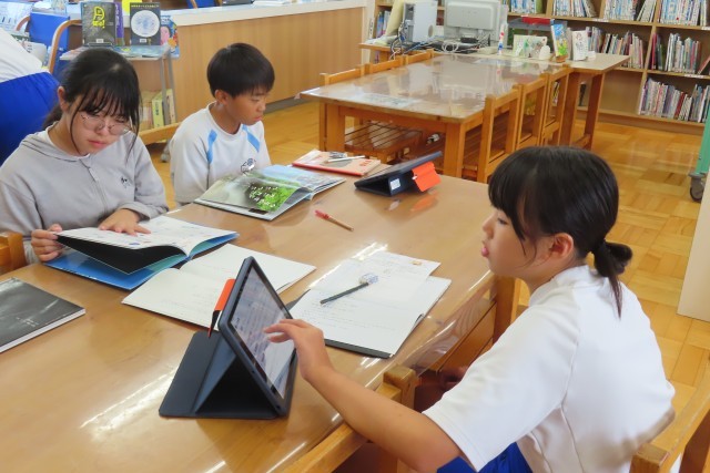 「やまなし」の学習をさらに深めます。6年生は自分で問いをもって「ここでは」学習を進めてきました。その「問い」について探求学習を進めています。そのために、宮沢賢治の他の作品も読んでみました。また宮沢賢治の生き方や考え方にも触れてみたくなってきました。自分のもった問いに向かって、自分の考えをどうまとめていったらよいかについてもしっかり考えています。学級ではこのあと、自分のまとめた考えを伝え合う「やまなし会議」が開催されるそうです。