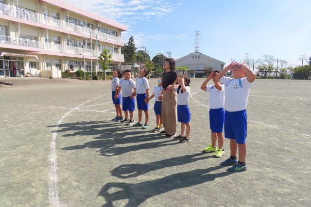 「ちいちゃんのかげおくり」の学習です。ちいちゃんがお父さんから教えてもらって大好きだった「かげおくり」。3年生の児童にとっては知らない遊びだったようで、実際に外に出てやってみました。「かげおくりのよくできそうな空だなあ」最初はみんなで手をつないで。ちいちゃんもそうだったように、いろいろなかげを空に送っていました。そんな美しい空ですが、とても悲しくてつらい空の下での物語であること。「ここでは」3年生の心の中に強く残ることと思います。しっかり読んでほしいです。