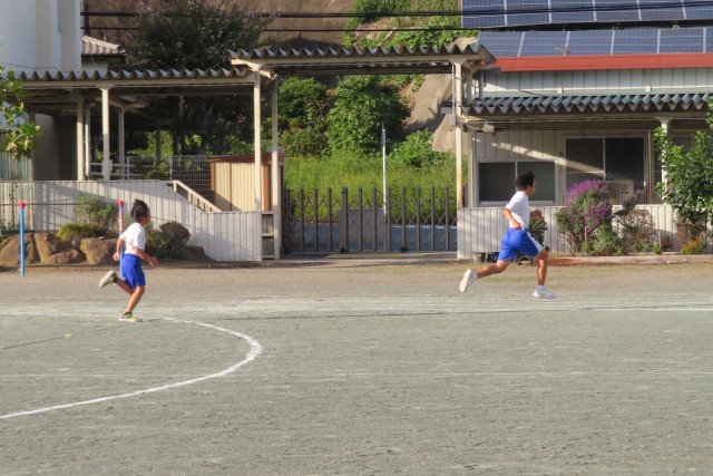 大会前最後の練習でした。チャレンジウィーク中の中学生が本当に親身になって応援してくれました。具体的なアドバイスをしてくれること、一緒に走ってくれること、頑張れ!と応援してくれること等、中学生は児童にとって最高の応援団となってくれています。また、児童にとっては目標となる存在でもあります。中学生が一緒に練習してくれ、モデルとなってくれたことを胸に、選手たちは明日ベストを尽くして頑張れることと思います。