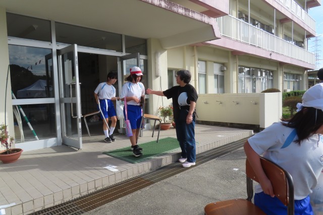 昨年度までお世話になった大好きな校長先生が応援にかけつけてくださいました。数ヶ月ぶりの再会でしたが、先生は、成長した児童の姿に感動していました。児童もとても嬉しそうで、「やるぞ!」とやる気にさらに火が付きました。