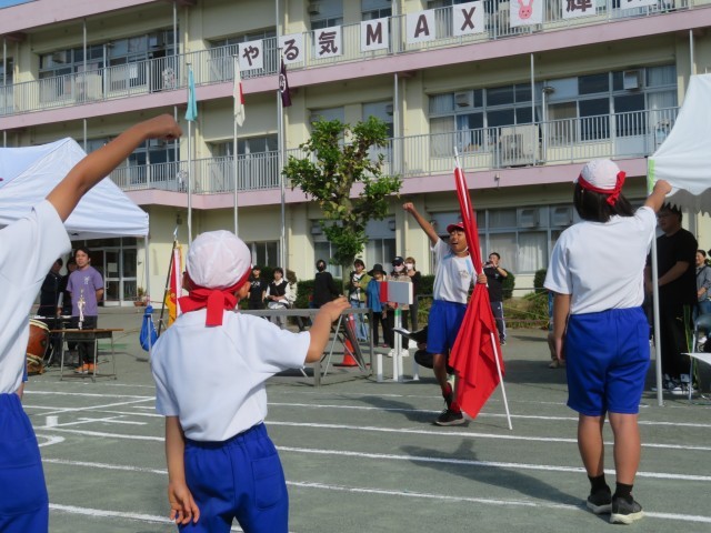 各団で気合いを入れたり、GO!GO!GO!(運動会の歌)を歌ったりして盛り上がりました。もちろん保護者や地域の方々からは「がんばれ!」の温かい拍手が届き、ますます気合いの入った児童でした。