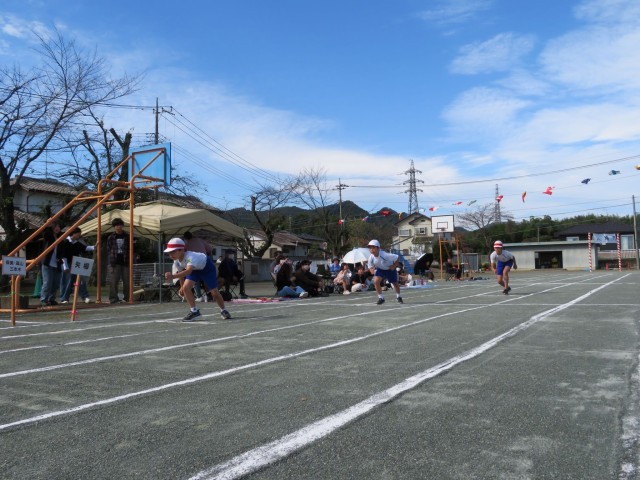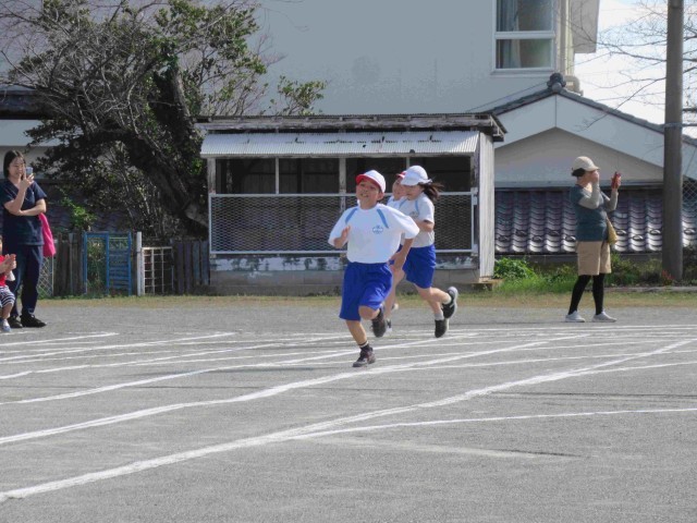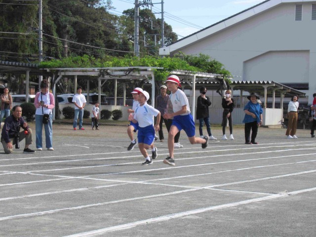 3・4年生は80メートルを走りました。最後、ゴールまで全力で走る姿が素晴らしかったです。そしてなかなかいい勝負のレースもあり、たくさんの応援の拍手や声をいただきました。