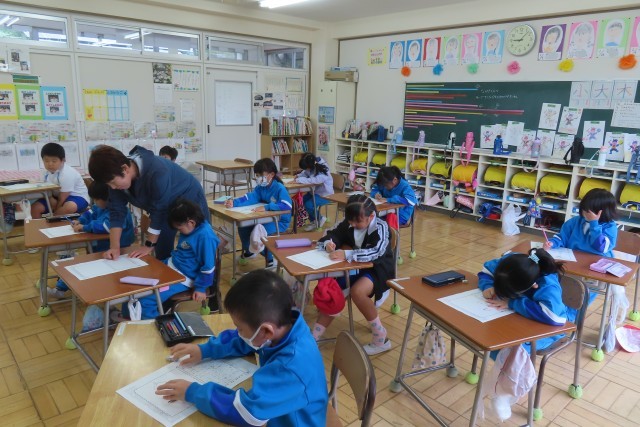 1年生にとって、はじめての運動会。とても強く心に残っているようです。今日は国語で「これまで」学習してきたことをもとにして、作文にしました。楽しかったことや頑張ったことをその理由とともに文にします。そして先生に見てもらったあと、絵を描きます。この絵にこのあと色が塗られると、さらに運動会の輝くシーンがよみがえってきますね。