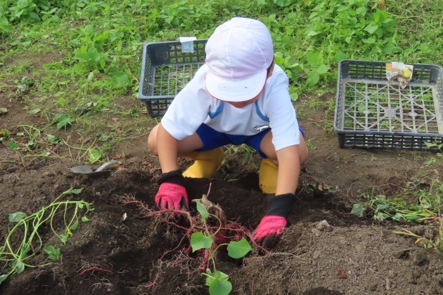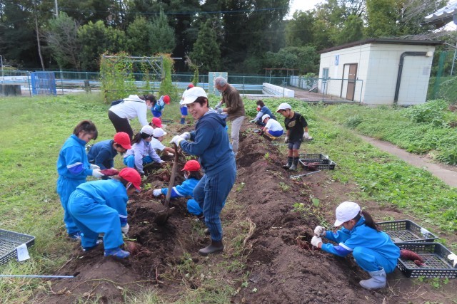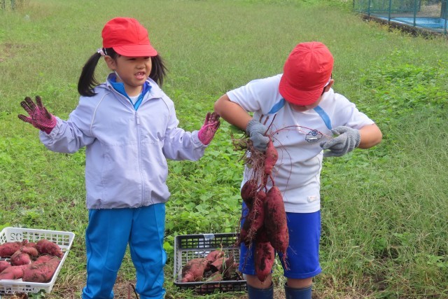 2年生が1学期から育ててきた「さつまいも」(何種類もあり)を収穫しました。2年生は1年生を誘ってみんなで楽しい時間を過ごしました。かなり大きなおいもがたくさんで、今年は豊作です。2年生ががんばったことはもちろんのこと、畑作りにご協力いただいた「稲穂の会」の皆様、苗植えにご協力いただいた「コメリ」の方々のおかげでもあります。ありがとうございました。
