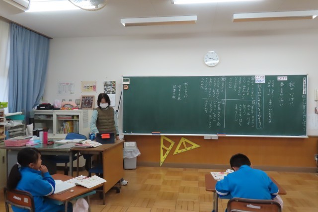 「秋がいっぱい」の学習で、教室では児童と先生が身の回りの「秋」について楽しそうに話していました。昨日の「おいもほり」もそうですが、たくさんの「秋」を感じるものが出てきました。「ここでは」それを文章に表現するようです。こうして四季折々の豊かさや美しさを感じて言葉にする時間をもてるのは素晴らしいことです。学校だけではなく、家族でも話題にしてもらいたいですね。