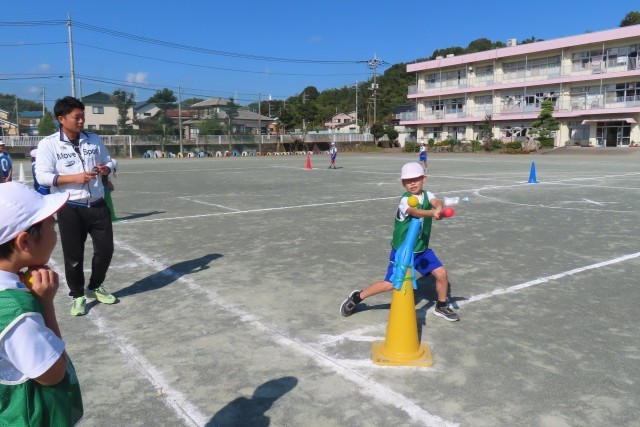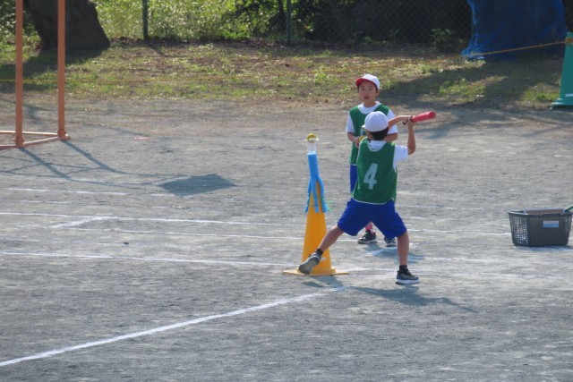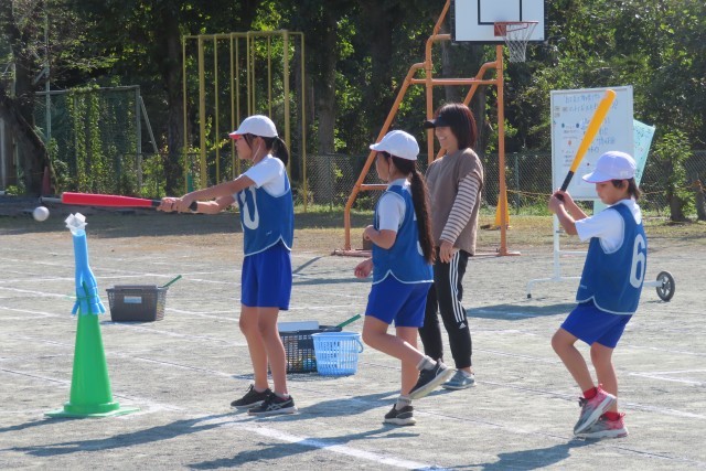 ティーボールの学習が始まりました。今日はいつも一緒の3年生がバス旅行のため、4年生のみの学習です。きっと今日練習して得た技術は、来週以降、3年生にしっかり、優しく、教えてあげよう!と思っている4年生だと思います。そして元気な声が聞こえてきますが、一つ一つの言葉に温かみがある4年生。友達を励ますことば、これからボールを打つことをみんなに知らせることば、打っていいよ(がんばって!)と構えることば、まかせてね!と友達が安心できることば等。4年生らしい学習の様子です。