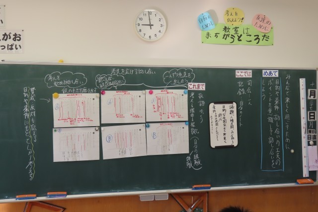 「みんなで楽しく過ごすために」の学習が充実しています。来月の人権集中学習月間における全校での遊びについて、「みんなが納得できる結論」にたどり着くような話合いの仕方を考え、身に付けています。「ここでは」学習していることは、「このあとは」本当に多くの場面で、社会人として社会に出て行ってからもずっと大切な基本となります。話合いの目的は?お互いに歩み寄れるところは?解決したいのは?を大切にした話合い(人との関わり)をしっかり学んでほしいです。