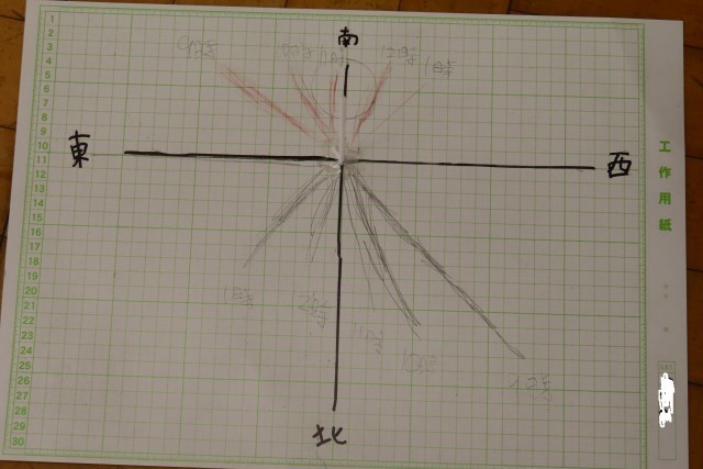 「太陽とかげ」先週校庭で、太陽の向きと影の向きの関係について調べるために、方位磁石と遮光プレートを使って実験した結果のまとめをしていました。「もっと長い時間、調べてみたかったなあ」「家に持って帰って実験の続きをしてみたら、雪の結晶みたいになるかな」だいぶ気に入ったようです。もちろん、その分!たくさんの学びもありました。また、教科書に「日時計」の紹介がありました。機械のない時代、約5000年以上も前の昔から、3年生が学習していることが生活の中で生かされていたのですね。児童にとって、学習と生活はつながっていることを実感するよい学びとなりました。