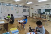 「かけ算」のたしかめ問題に挑戦しました。ちょうど教室では、発展問題を。どんな問題かというと、4皿のイチゴの数をかけ算を使って求めますが、お皿の上のイチゴの数はそれぞれ違っているので、どうすればよいか?イチゴを動かしてかけ算で求めます。どう動かすか?はみんな一緒ではなく、それに伴って、3×4なのか4×2なのか、式も異なってきます。でもそれをしっかり理解できていたこと、友達の動かし方を知って「なるほど!そういう動かし方もあったか!」と学んだことは、とてもよかったです。感心しました。