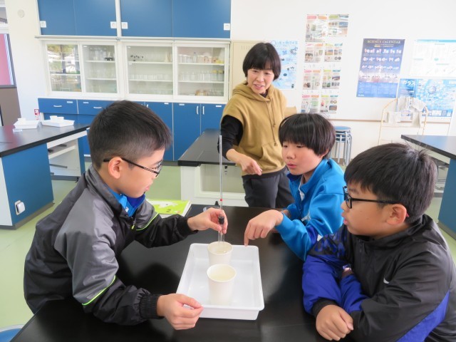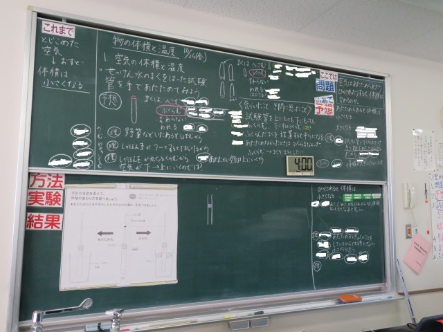 「物の体積と音頭」今日は、水をあたためたり冷やしたりして体積の変化がどうなるか?実験を通して学びました。だいたい予想通りだったようですが、実際に実験してみると、学びが大きくなります。以前に空気をあたためたり冷やしたりしたときの体積の変化と比較してまた考えます。ガラス管を使った実験に、みんなで協力してできました。安全第一でできる安心した学習環境が整っていることも学習の充実、「学びいっぱい」「やる気いっぱい」につながります。