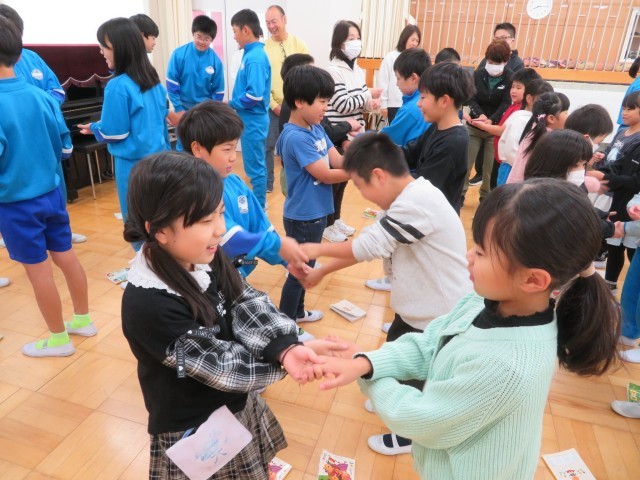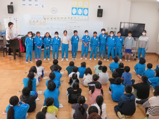 段々と冷え込みの厳しい時期となりましたが、今朝はみんなで、「心と体をあたためよう」を合言葉に、たくさん歌いました。まずは音楽で楽しく仲良く体ほぐし。そして今月の歌「歌がいきをする」を楽しく歌いました。とっても上手でした。次に5年生が今度みんなで一緒に歌いたいねと「手をつなごう」という歌を紹介してくれました。みんな一気に好きになりました!最後に「まっかな秋」「小さい秋みつけた」「赤とんぼ」を歌って秋を感じて、心も体もポカポカあたたかくなりました。今日も「笑顔いっぱい」元気にスタートです!