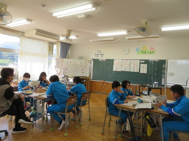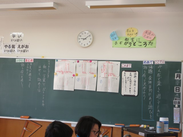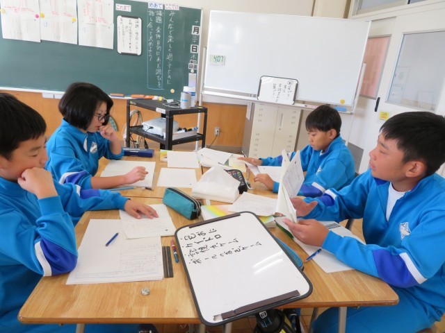 「みんなで楽しく過ごすために」いよいよ今日は進行計画に沿ったグループでの話合いの時間です。目的や条件に沿って、自分の考えを友達に伝えます。主張や理由、その根拠もはっきりさせて伝え合って話し合って、遊びを決めます。来月の人権集中学習期間に全校みんなで楽しむ遊びです。1年生から6年生までみんなが楽しむ姿を想像しながら、とてもいい話合いができました。細かいところまで低学年の子のことを考えるなど、思いやりあふれる気持ちのこもった話合いでした。