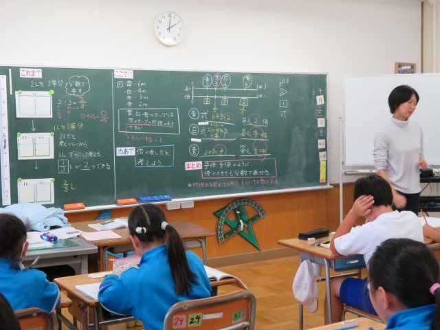 「分数と小数、整数」の学習では、「分数倍」つまり何倍かを表す数が分数になることがあることを学習しました。いつも大切なのは「もとにする量は?」「求めるのは?」「分かっているのは?」きちんと問われている内容を理解することです。どんなときでも大切です。