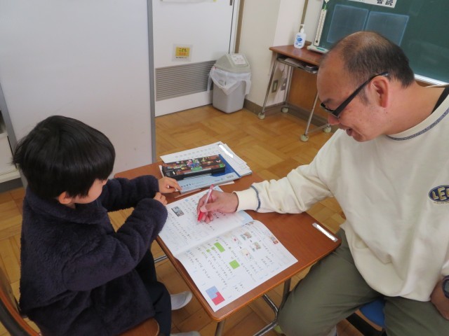 2時間目、1年生がたしざんの問題プリントを頑張っていました。答えが10以上になるたし算の文章問題です。しっかり文章問題を読んで、これはたし算かな?ひき算かな?しっかり考えて、丁寧に式を書いて計算していました。どんどん算数の力が付いていて驚くほどです。「学びいっぱい」で!2学期後半も頑張っています。