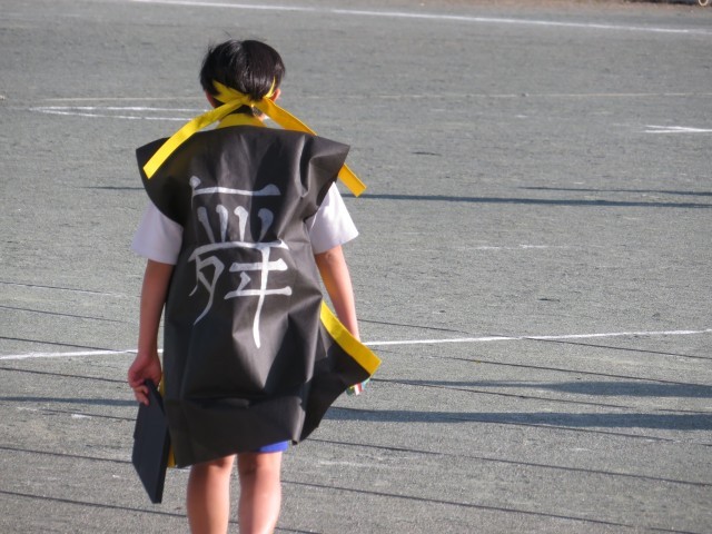 4年生は「校内絵をかく会」で、運動会で頑張った「雷光」を表現します。どんな自分を表現しようか?今日はあのときの衣装に身を包んで校庭でポーズを決めて写真におさめました。また演技し始めるのではないかと思うくらい、あのときの感動的なシーンがよみがえってきます。4年生が、今度は校庭でなく画用紙の上でどう表現するのかが本当に楽しみです。