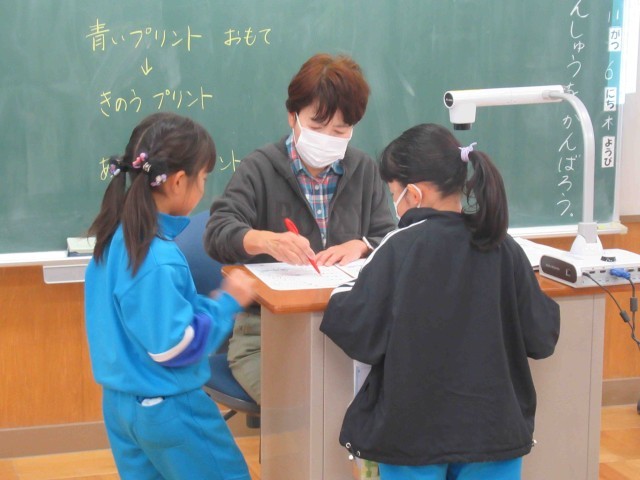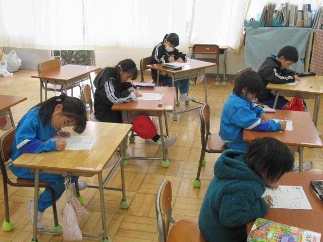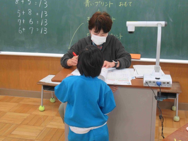 1年生はたし算のまとめをしていました。教科書にある難しいチャレンジ問題も、みんなで考えて答えを導き出していました。その後はワークやプリントに挑戦。たくさん問題がありましたが、みんなとっても速く計算ができるようになりました。次の学習も楽しみですね。