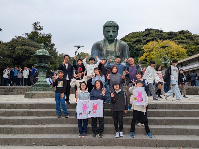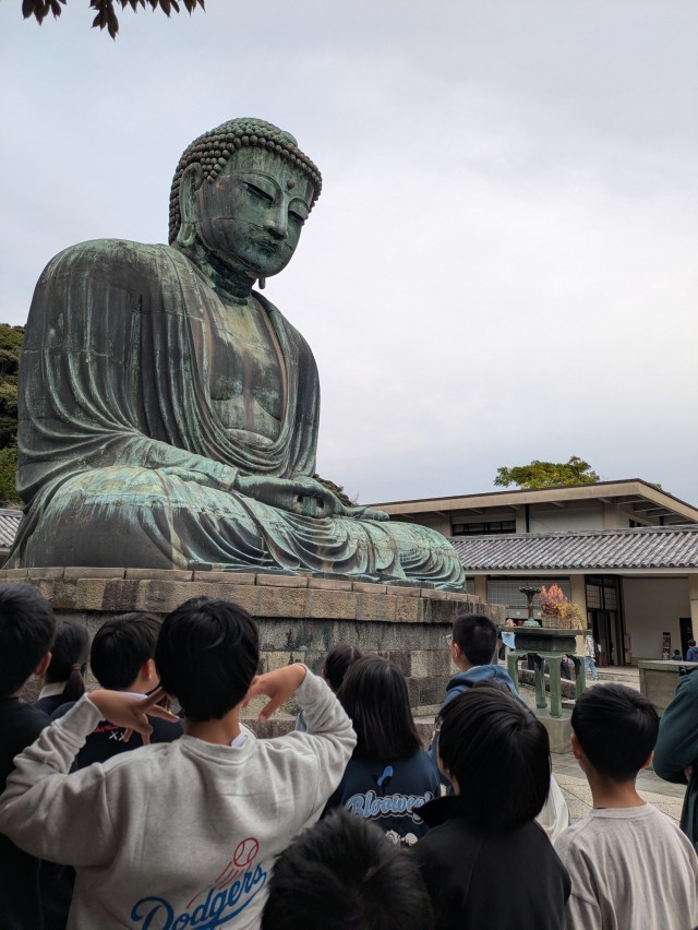 大仏様の前で記念写真。その後ガイドさんから説明を聞きました。さあ、このあとホテルに向かいます
