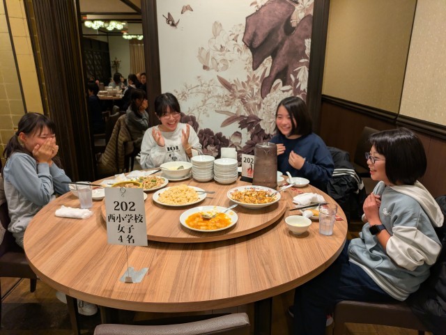 本格的中華をたくさんたくさん味わっています!女の子たちは山盛りチャーハンの登場に感激の表情で、かわいいです!