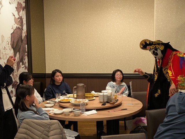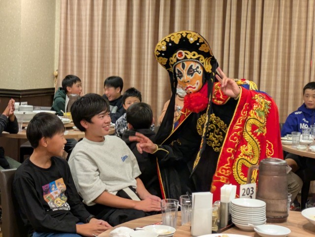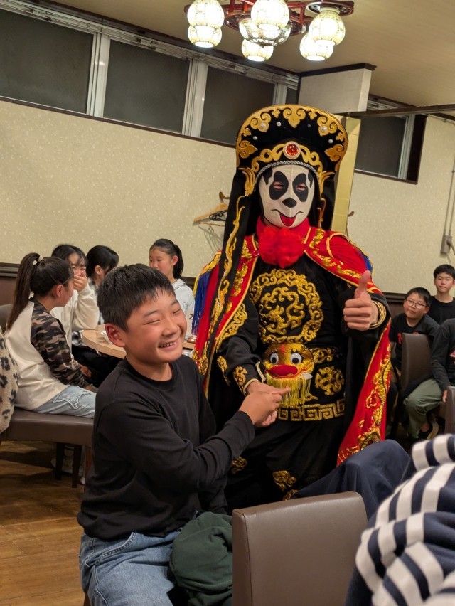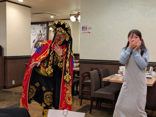 食事後にサプライズで変面ショー!みんなとてもとても笑顔いっぱい!大喜び&見事な変身芸に驚き!とても楽しい思い出がまた一つ増えました!