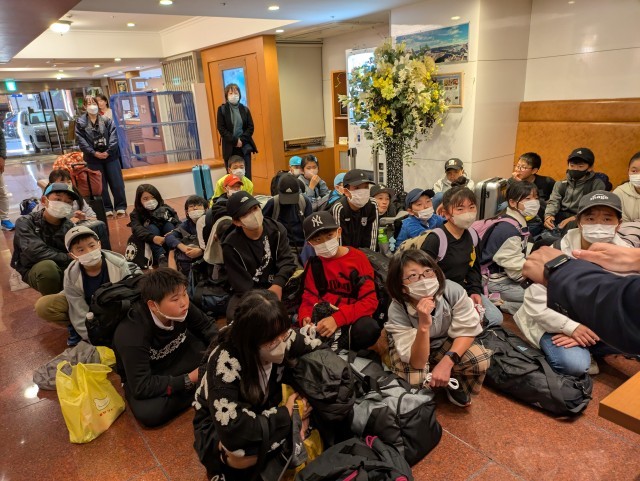 予定通りホテル出発しました。ホテル滞在が楽しみ!と言ってた児童が多かったので、少し寂しそうでした。でも、天気は快晴!八景島、国会も楽しみです!