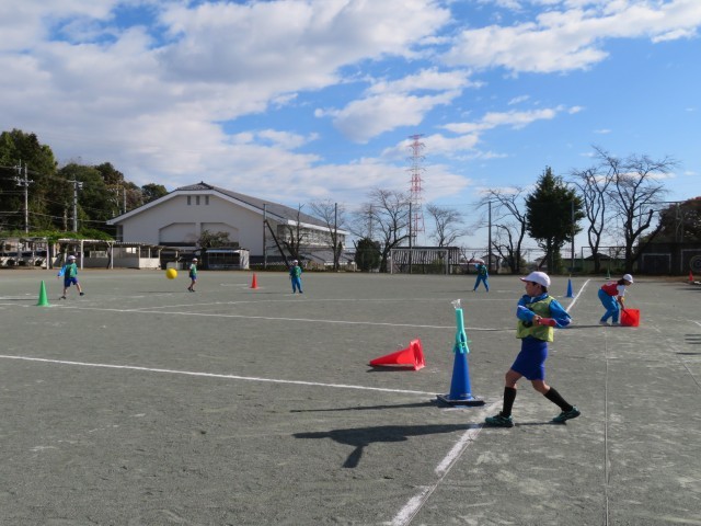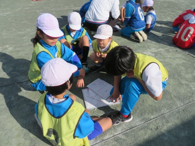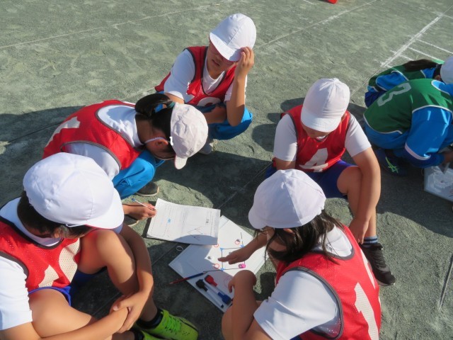 「打って、走って、頭を使って守る!エンジョイ ティーボール!!」どんどん技術が身に付いてきて楽しくなっています。でもそれだけがゴールではありません。「ここでは」課題に対して一人一人の考えが大切にされたうえでの作戦会議「パワーアップタイム」を経て、だんだんと技術を身に付け、友達と一緒に運動することの楽しさを味わっています。まさに一人一人、そしてチームのパワーがアップされる時間です。自分の考えをもつために、仲間のプレーをよく見て、真剣に考えて、声をかけあっています。