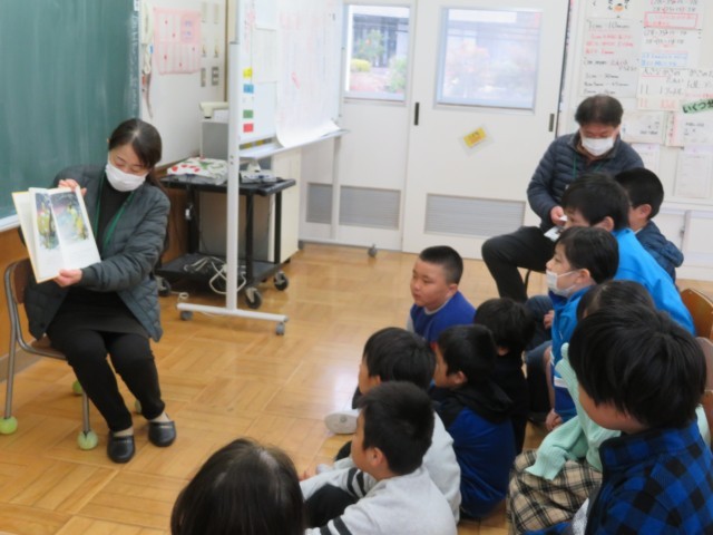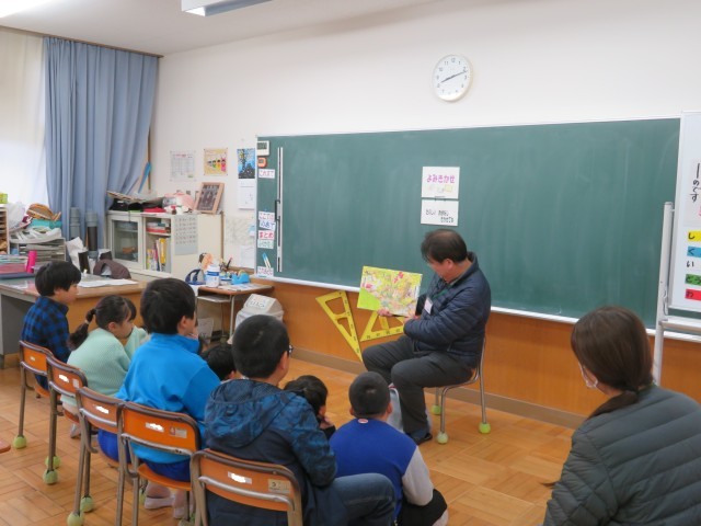 今朝は、美九里西小の児童みんなが大好きな、「さくらの会」の皆様による読み聞かせの時間でした。それぞれの学年の児童に応じた本を選んでいただき、読んでくださり、「笑顔いっぱい」の1日をスタートすることができました。いつもありがとうございます。