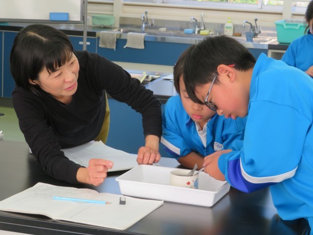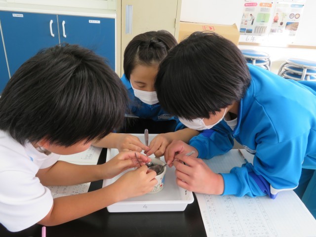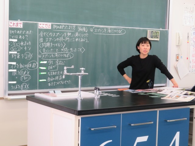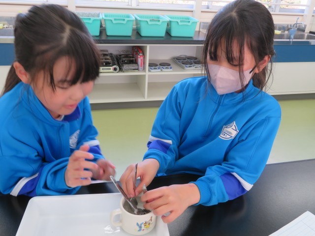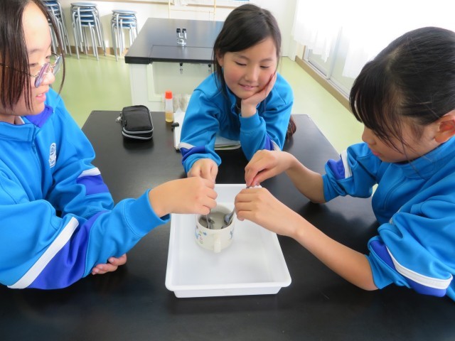 「物のあたたまり方」の学習に入りました。「ここでは」どんなことを学ぶのか?どんなことを調べたいか!一つの実験を通して課題をもちました。熱湯につけたスプーンの前後の触った感じから生まれる疑問や気付きが「ここでは」の課題につながります。熱湯を扱う実験なので、先生の模範をよく見て、友達と協力して、安全に実験することができました。また、自らの生活における経験ともつなげて学び進め、生活に生かせるようになることも期待しています。