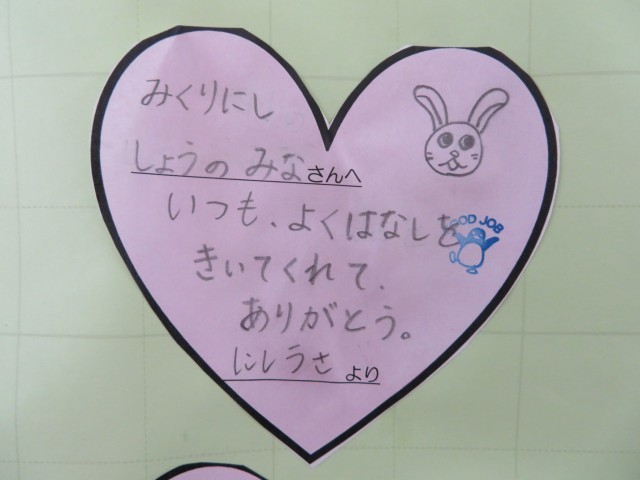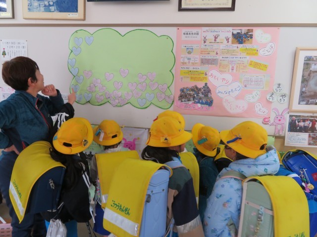今日から始まった人権集中学習の取組に関することを、西うさぴょん&教務主任コンビが掲示してくれました。特に、「Happyはぁとふるツリー」には、さっそく、たくさんのやさしいハートのお花が咲き始めました。1年生が下校前に嬉しそうに読んでいました。「わたしのがある!」「うれしいな!」児童どうしの温かなメッセージは、みんなを「笑顔いっぱい」にしますね。そしてよ~く見ると、西うさぴょんからのメッセージもありました!