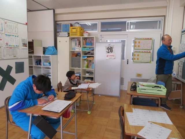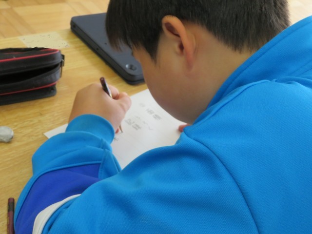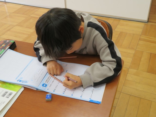1時間目に国語で2人とも漢字のワークやプリントをよく頑張りました。1年生は習いたての漢字を丁寧に、しっかりした字で書いていました。何度も消して書き直していくうちに、バランスよく上手に書くことができました。